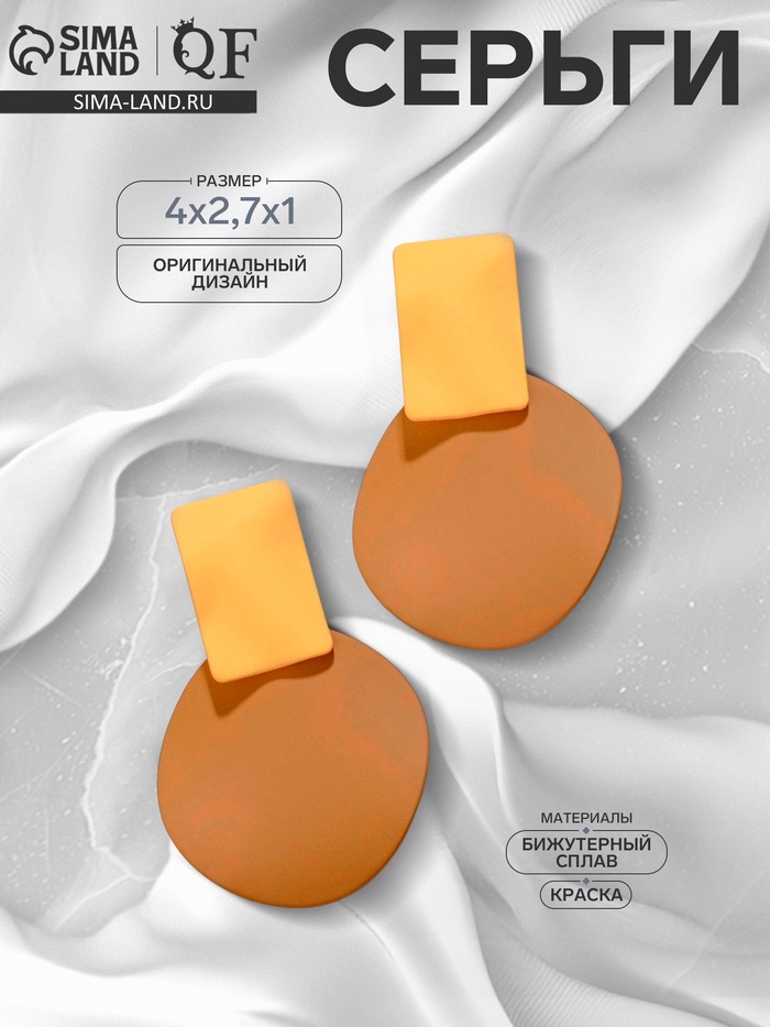Серьги металл «Яркость» геометрия, цвет жёлто-коричневый