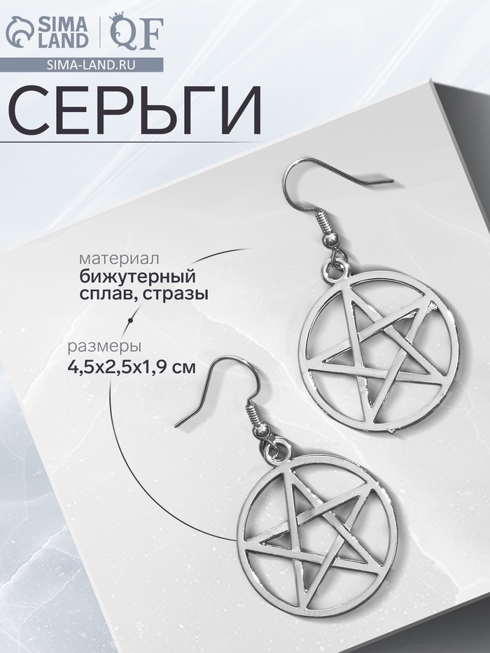Серьги металл «Пентаграмма» перевёрнутая, цвет серебро