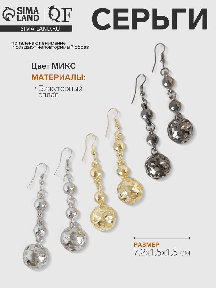 Серьги висячие «Шелест» шарики, резные, цвет МИКС, 7,2 см