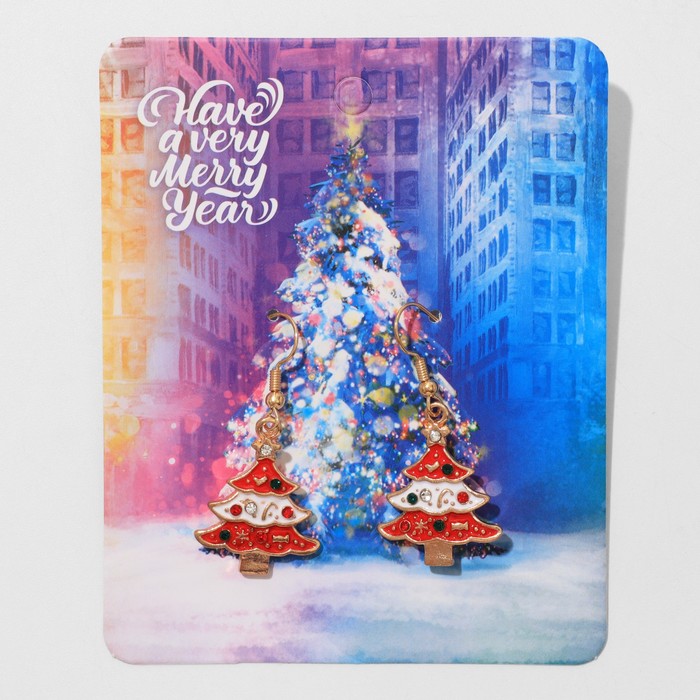 Серьги висячие «Новогодние» ёлочка в украшениях, цвет бело-красный в золоте