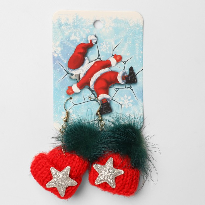 Серьги висячие «Новогодние» шапочки мягкие, цвет красно-зелёный