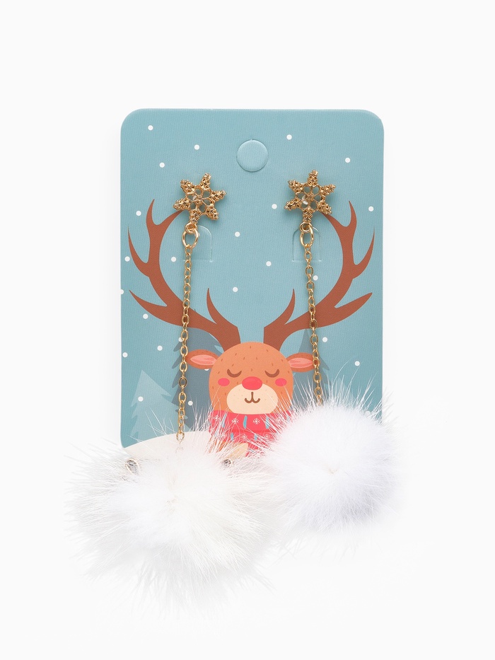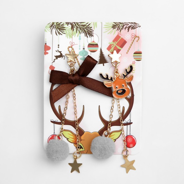 Серьги висячие «Новогодние» олень и бант, цветные в золоте