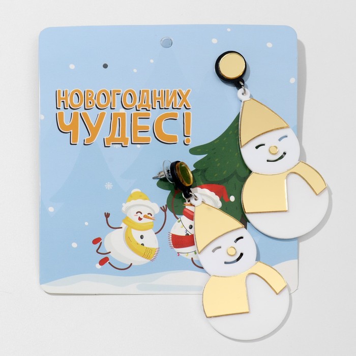 Серьги акрил «Снеговики» в воротниках, цвет бело-золотистый в серебре