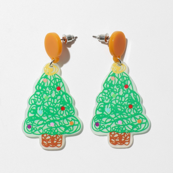 Серьги «Новогодние» ёлки разукрашенные, цветные в серебре