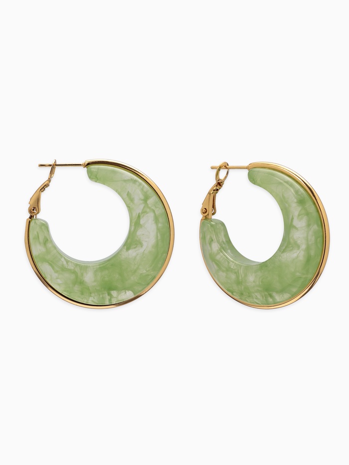 Серьги-кольца акрил «Тренд», нефритовые в золоте