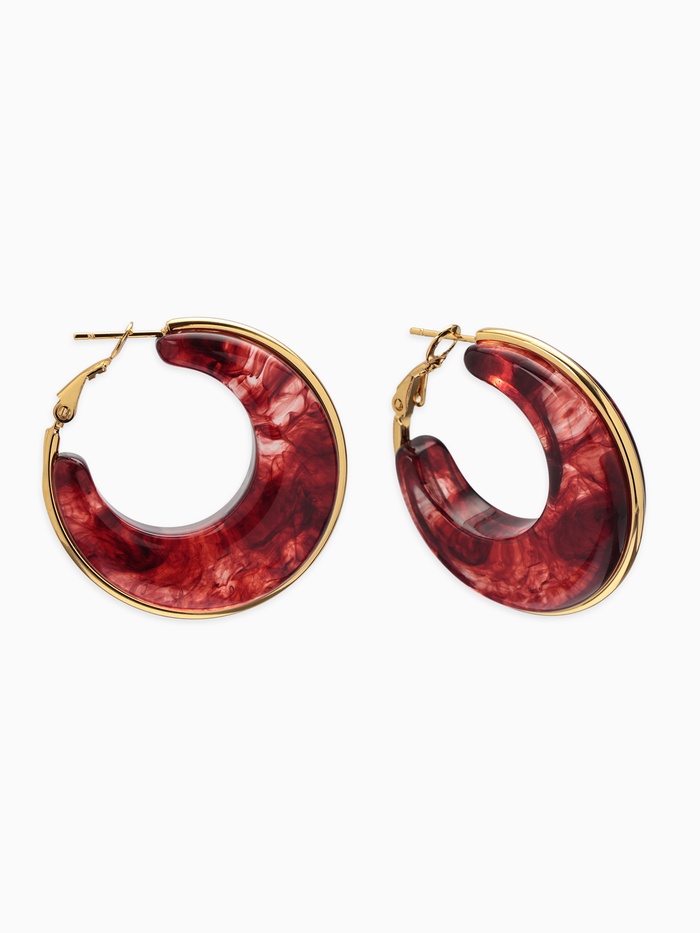 Серьги-кольца акрил «Тренд», бордовые в золоте