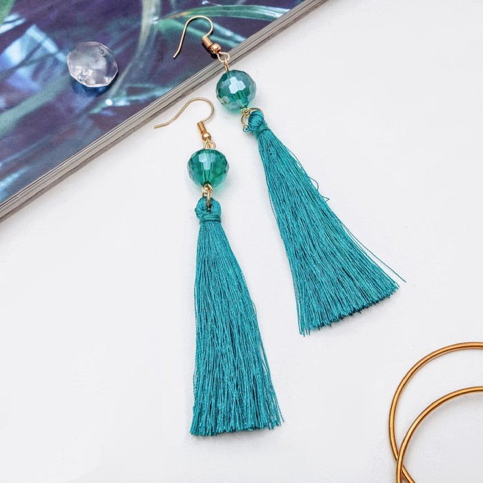 Серьги ассорти «Кисти» диско, цвет лазурный в золоте, L кисти 7 см