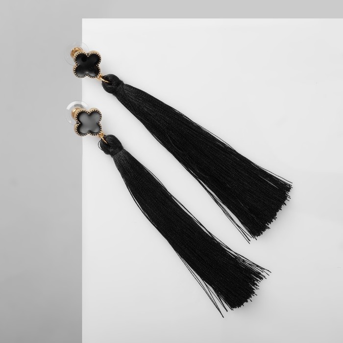 Серьги «Кисти» классика, цвет чёрный в золоте, L кисти 9,5 см