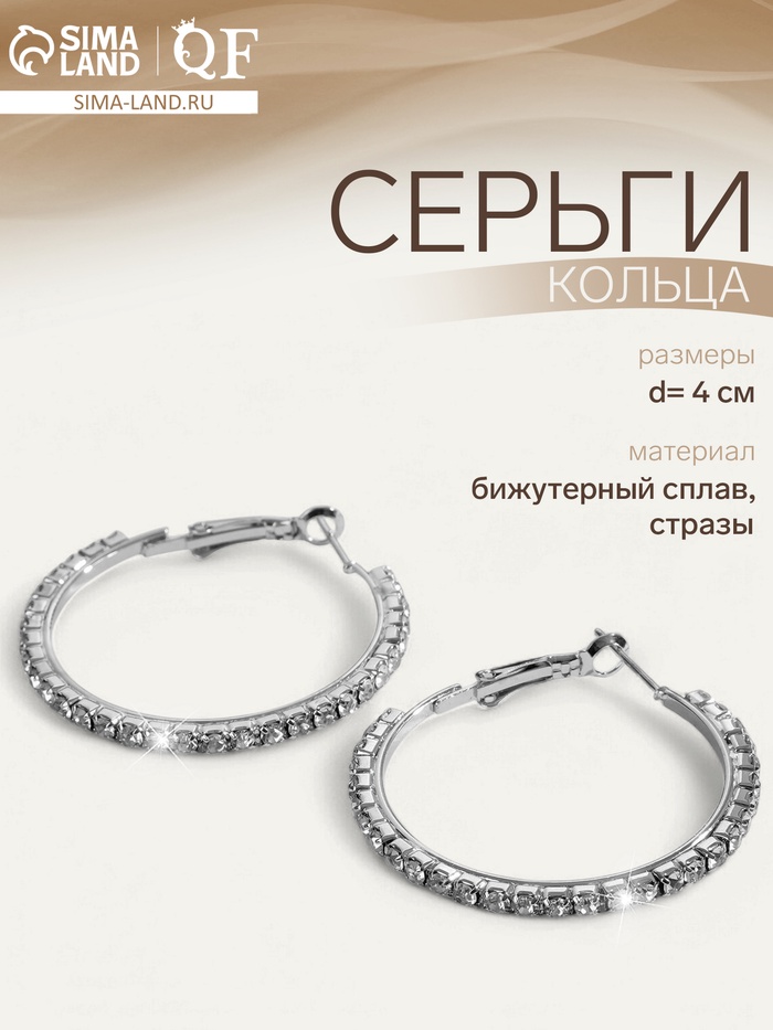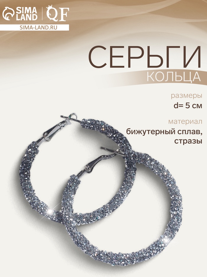 Серьги кольца со стразами QF «Шанталь», d=5, цвет серебро