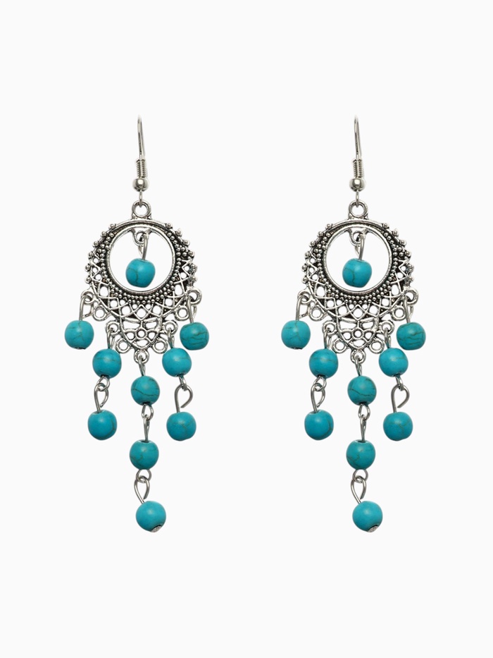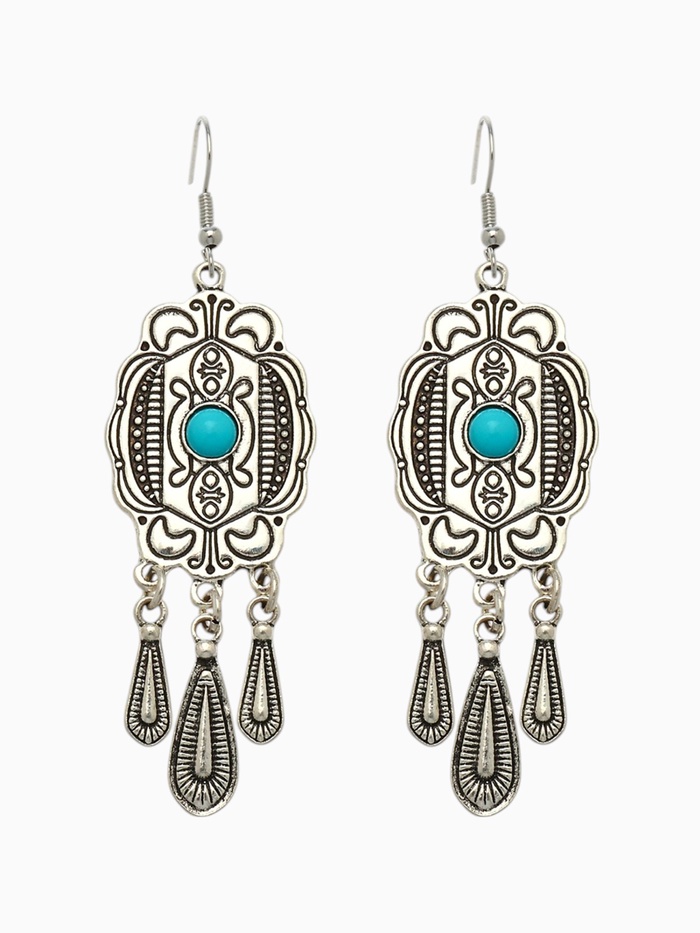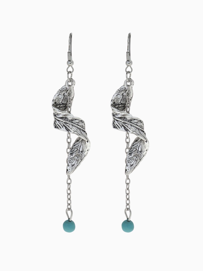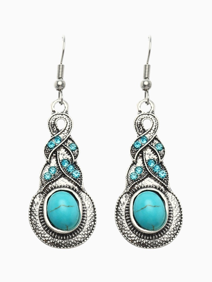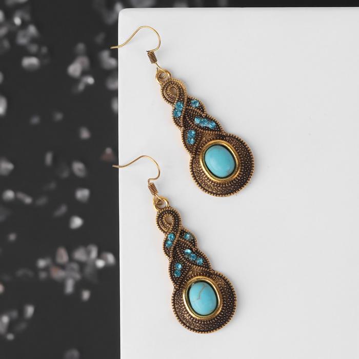 Серьги под натуральный камень «Бирюзовый мир» коса, голубые в чернёном золоте