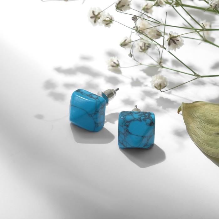 Серьги под натуральный камень «Бирюзовый мир» сфера, голубые в серебре