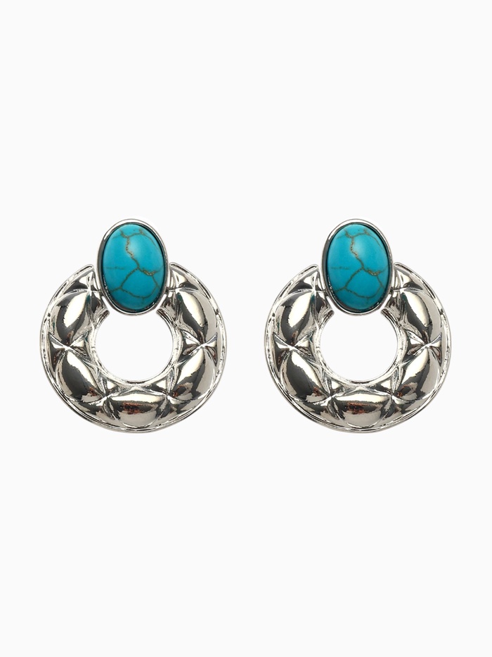 Серьги «Бирюзовый мир» круг в волне, голубые в чернённом серебре