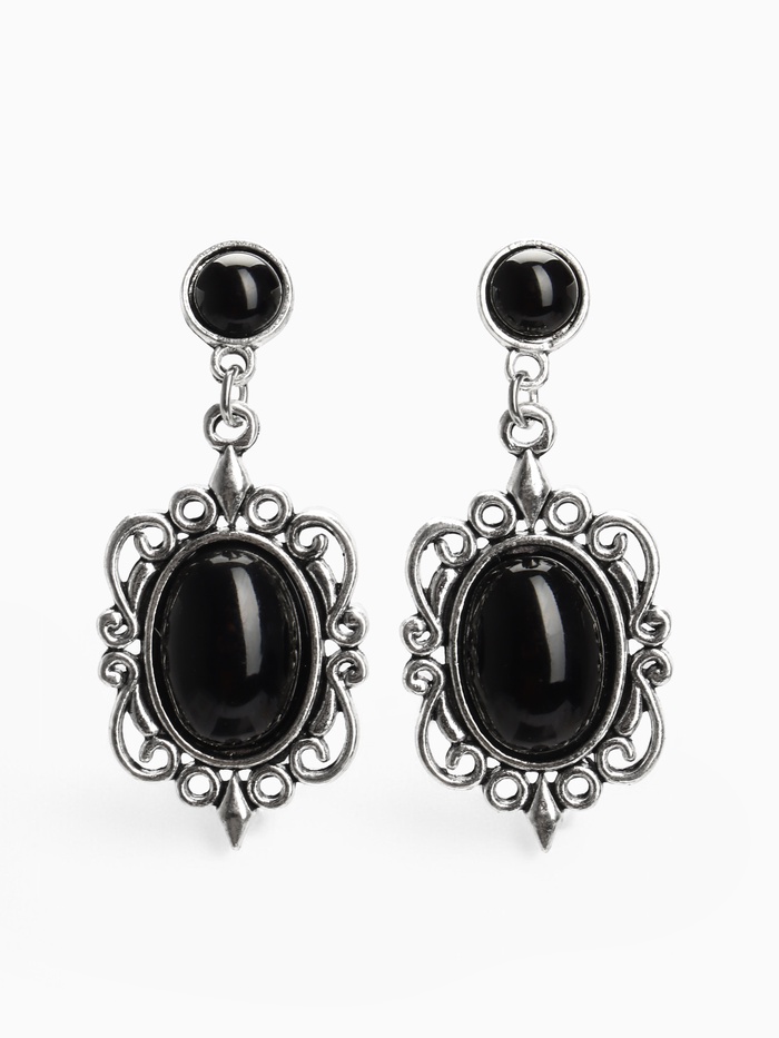 Серьги «Овал» винтаж, чёрные в чернённом золоте