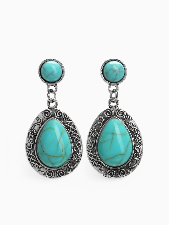 Серьги «Бирюзовый мир» капля, голубые в чернённом серебре