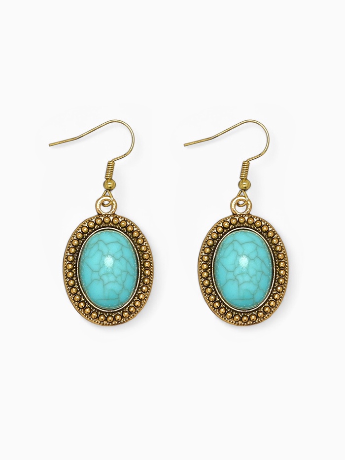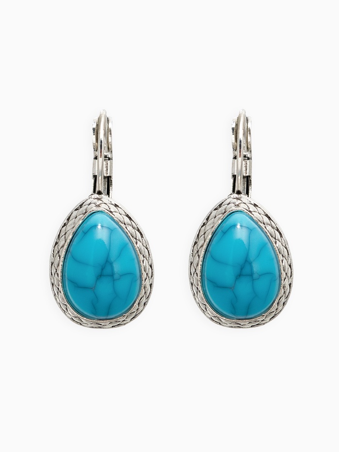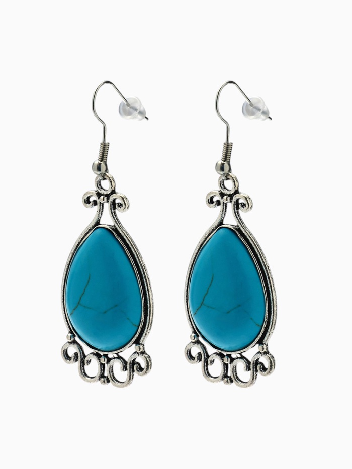 Серьги под натуральный камень «Этника» капля бирюзы, цвет голубой в чернёном серебре