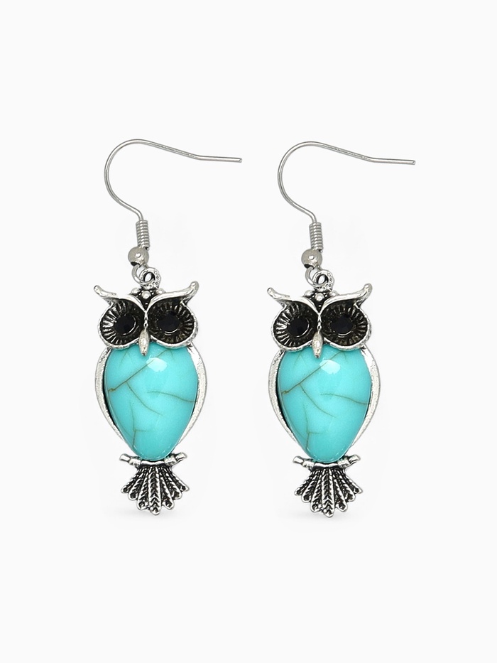 Серьги «Бирюзовый мир» сова, голубые в чернённом серебре