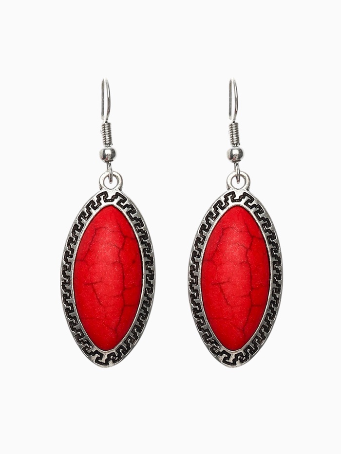 Серьги под натуральный камень «Натурель» эллипс, красные в чернёном серебре