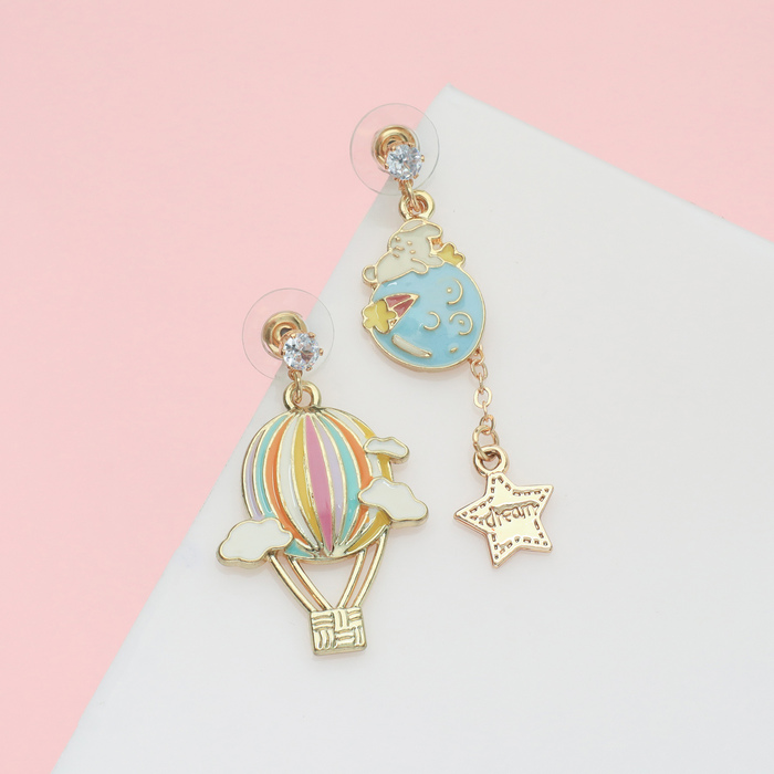 Серьги с эмалью «Путешествие» воздушный шар и земля, цвет розово-голубой в золоте