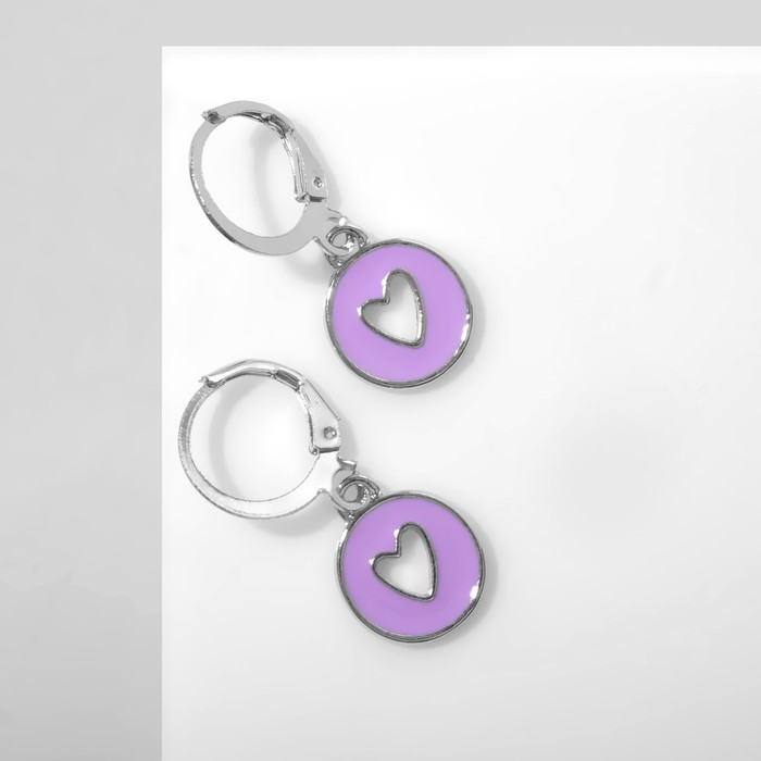 Серьги с эмалью «Сердце», цвет фиолетовый в серебре