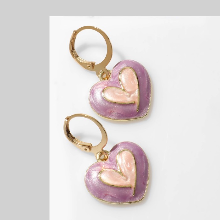 Серьги с эмалью «Сердце», цвет сиренево-розовый в золоте