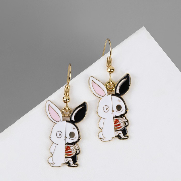 Серьги с эмалью «Зайчики» скелеты, рентген, цветные в золоте