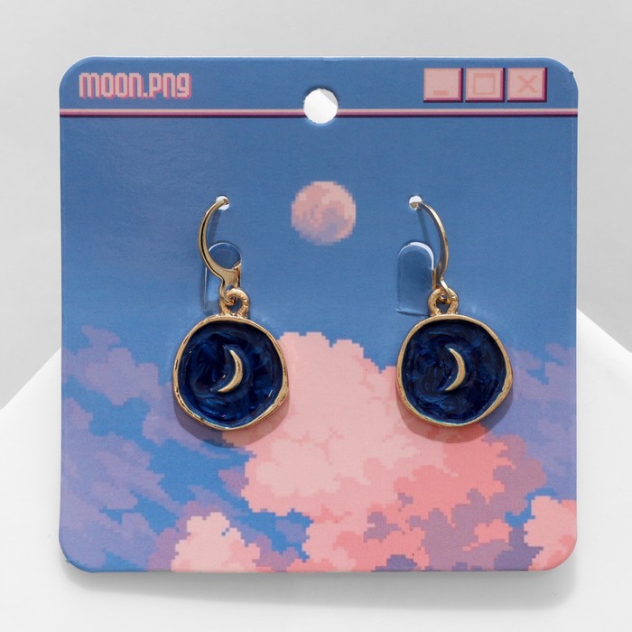 Серьги с эмалью «Искусство» полумесяц, цвет синий в золоте