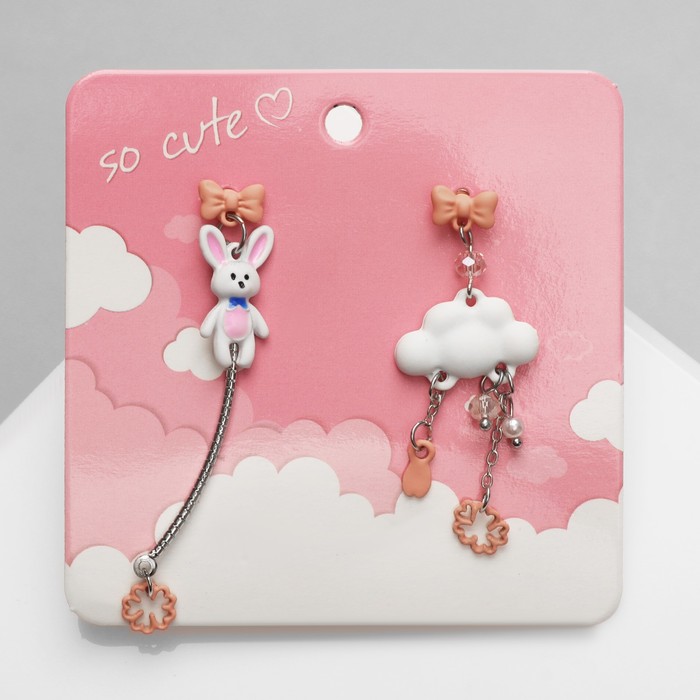 Серьги ассорти «Заяц» с облачком, цветные в серебре