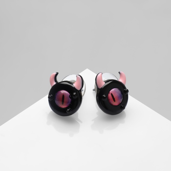 Серьги с эмалью «Монстрики» с рожками, цвет чёрно-розовый