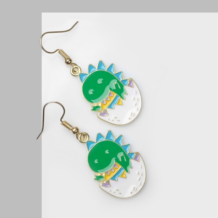 Серьги с эмалью «Динозавр» в яйце, цветные в золоте