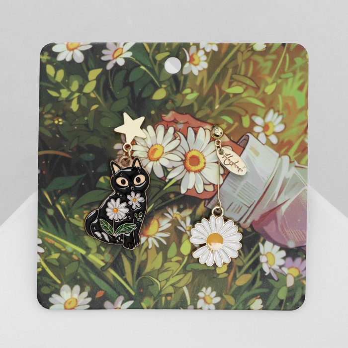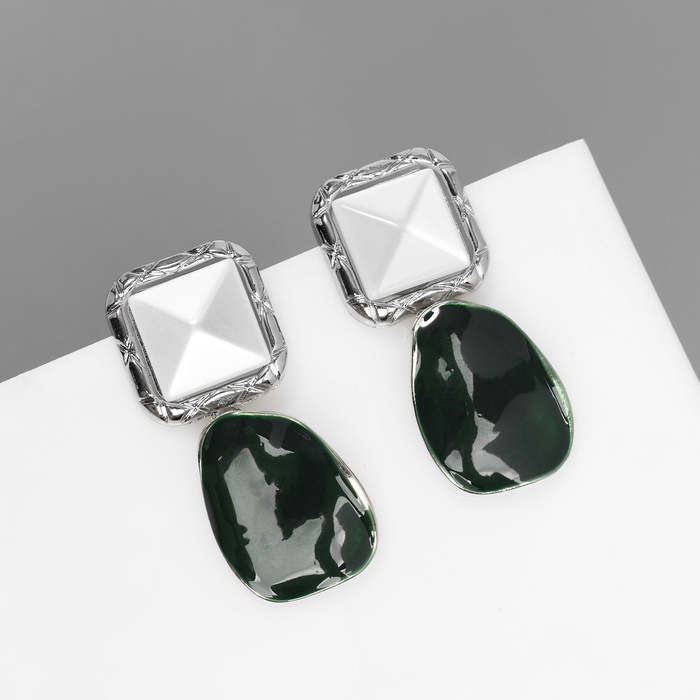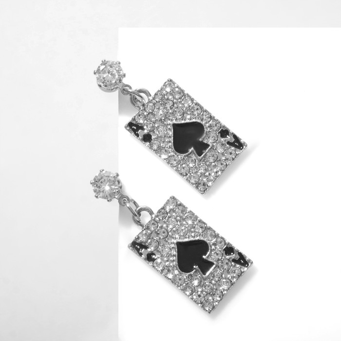 Серьги с эмалью «Карты» пики, цвет чёрно-белый в серебре