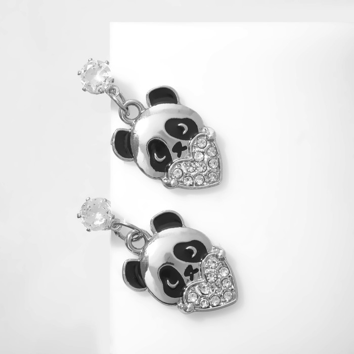 Серьги с эмалью «Мишка» и сердце, романтика, цвет бело-розовый в золоте