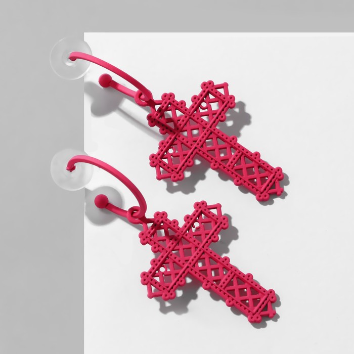 Серьги с эмалью «Крестик» ажурный, цвет матовый розовый