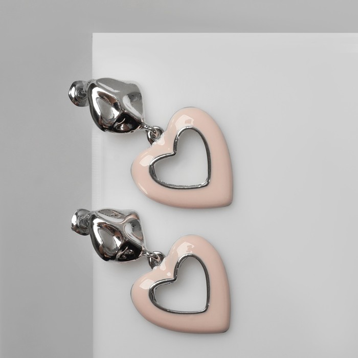 Серьги с эмалью «Сердце« вдохновение, цвет розовый в серебре