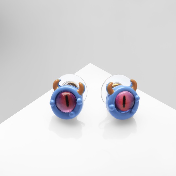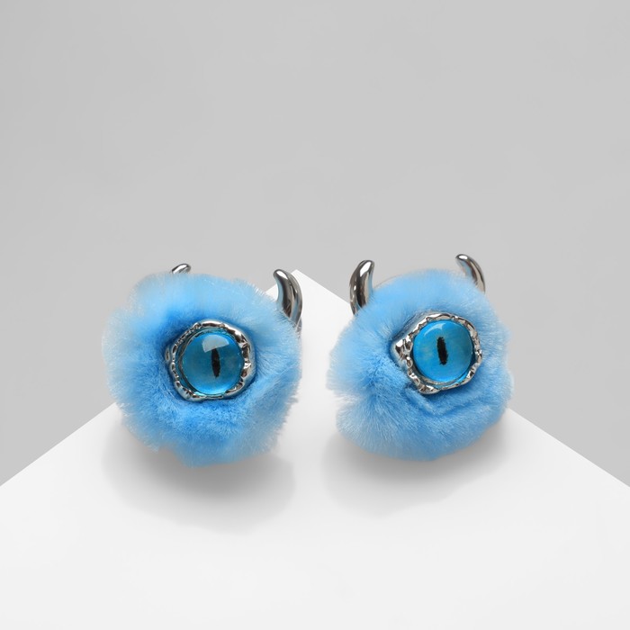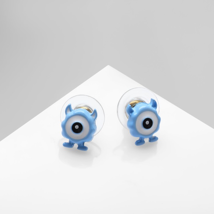 Серьги с эмалью «Монстрики» йети, цвет голубой
