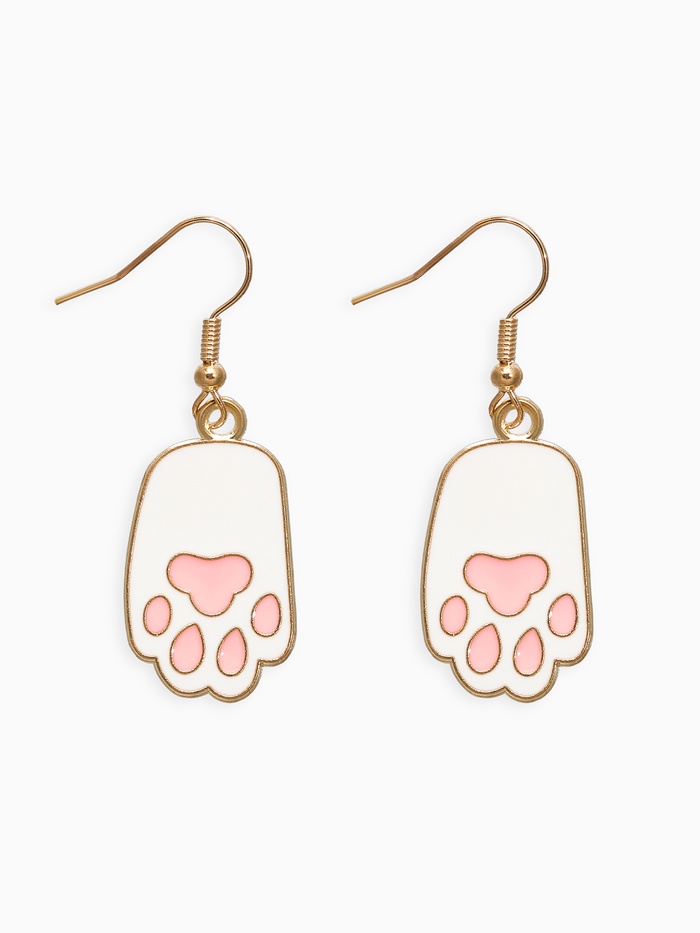 Серьги с эмалью «Лапка» кота, розово-белые в золоте