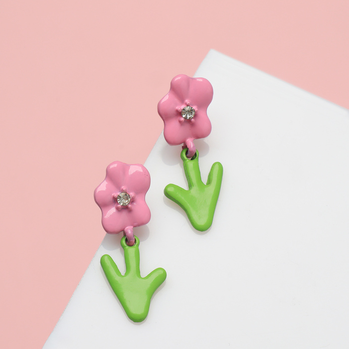 Серьги с эмалью «Цветы», цветные