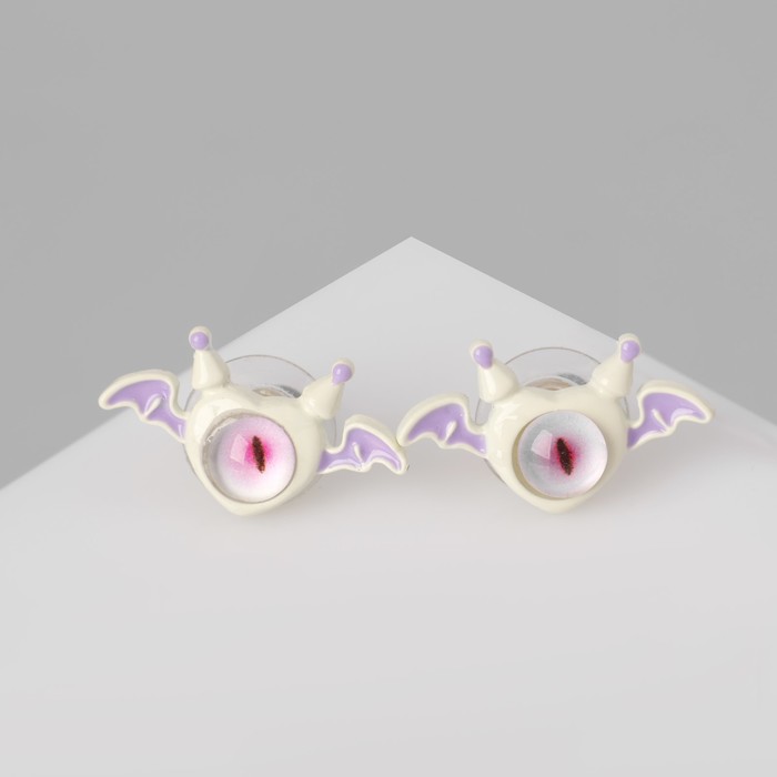 Серьги с эмалью «Монстрики» с крылышками, цвет бело-розовый