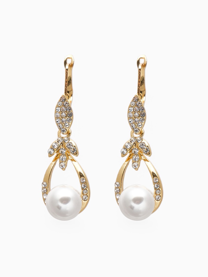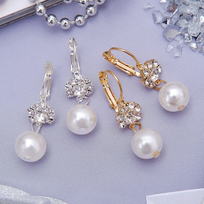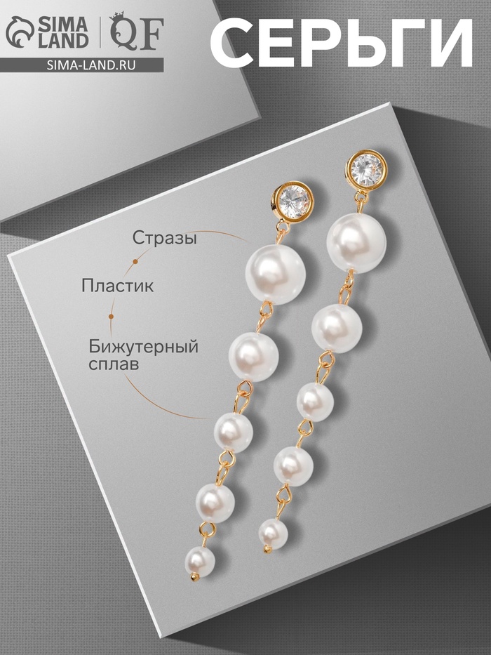 Серьги с жемчугом «Висячие» страза в огранке, цвет белый в золоте