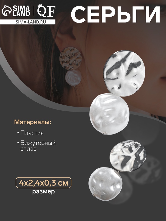 Серьги со съёмным элементом «Трансформер» жемчужный диск, цвет белый в золоте