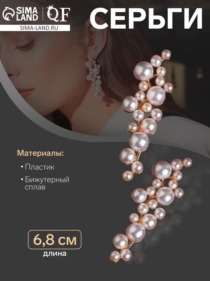 Серьги с жемчугом «Невеста» бусины d=1,5, цвет белый