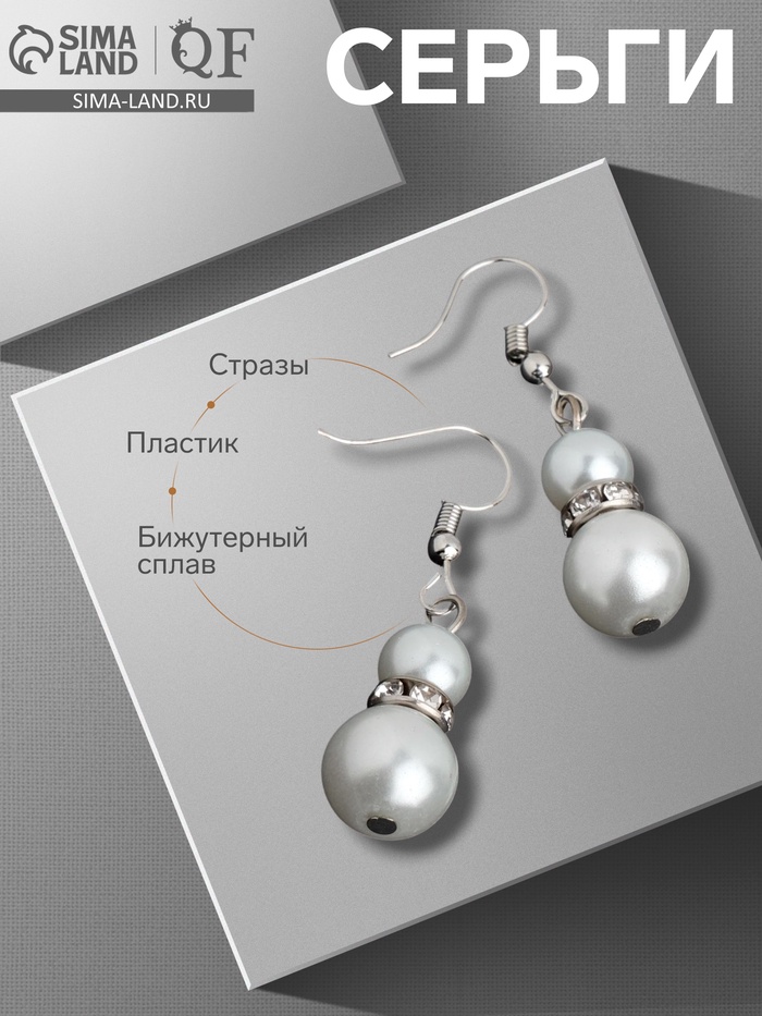 Серьги с жемчугом «Шарик двойной», цвет белый в серебре