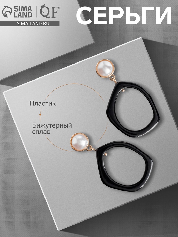 Серьги с жемчугом «Шарики и сцепление колец», цвет белый в золоте