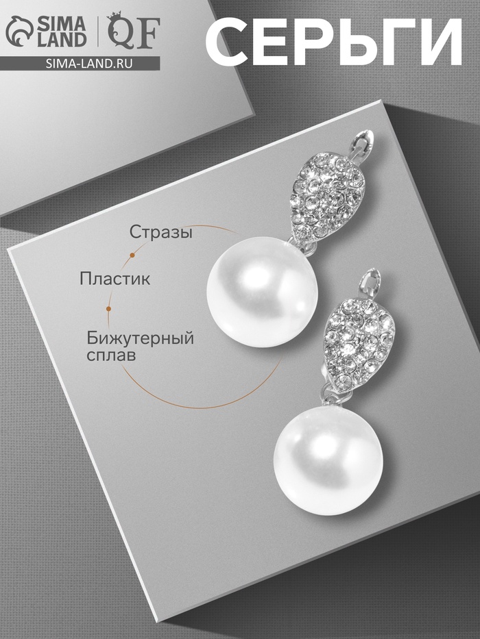 Серьги с жемчугом «Грейс» капля и сфера, цвет белый в серебре