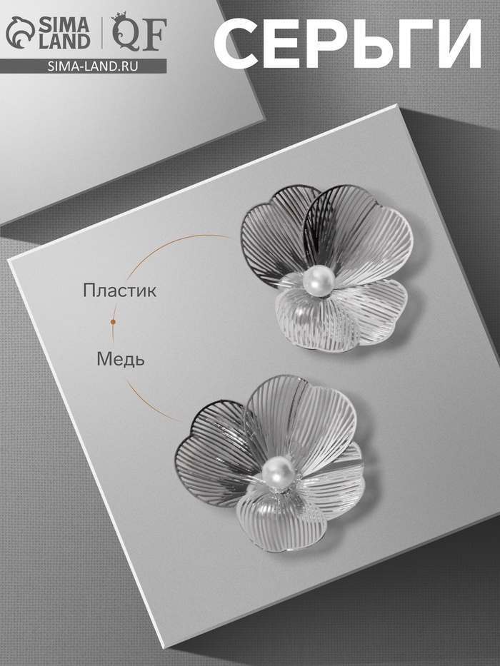 Серьги с жемчугом «Цветы» лёгкие, цвет белый в серебре