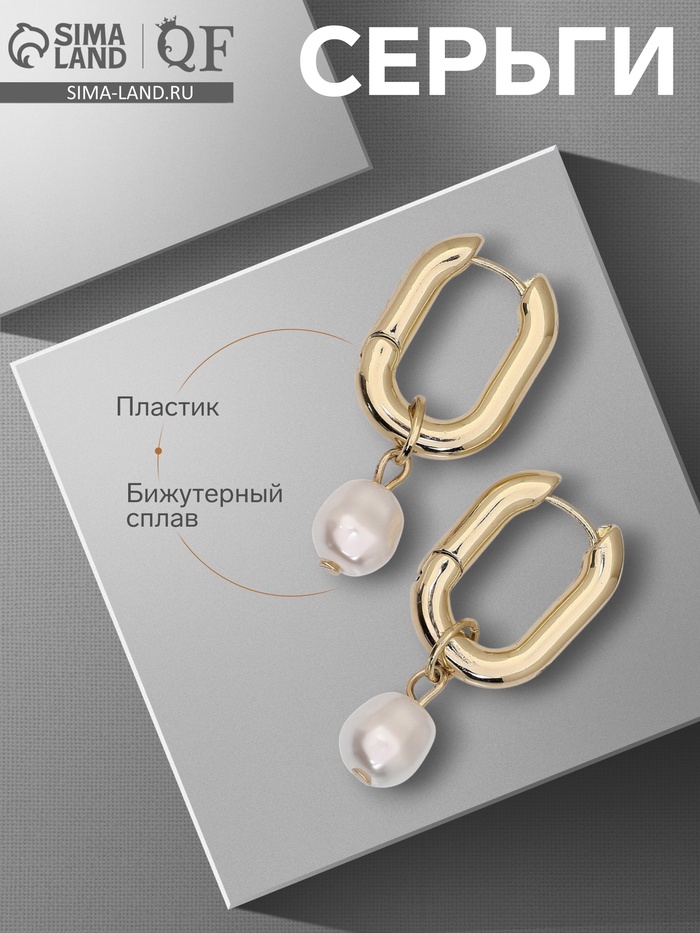 Серьги с жемчугом «Абстракция» завиток, цвет золото
