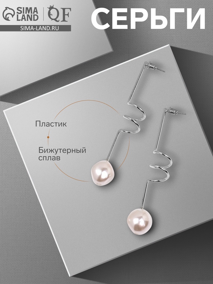 Серьги с жемчугом «Бусина» спираль мини, цвет серебро