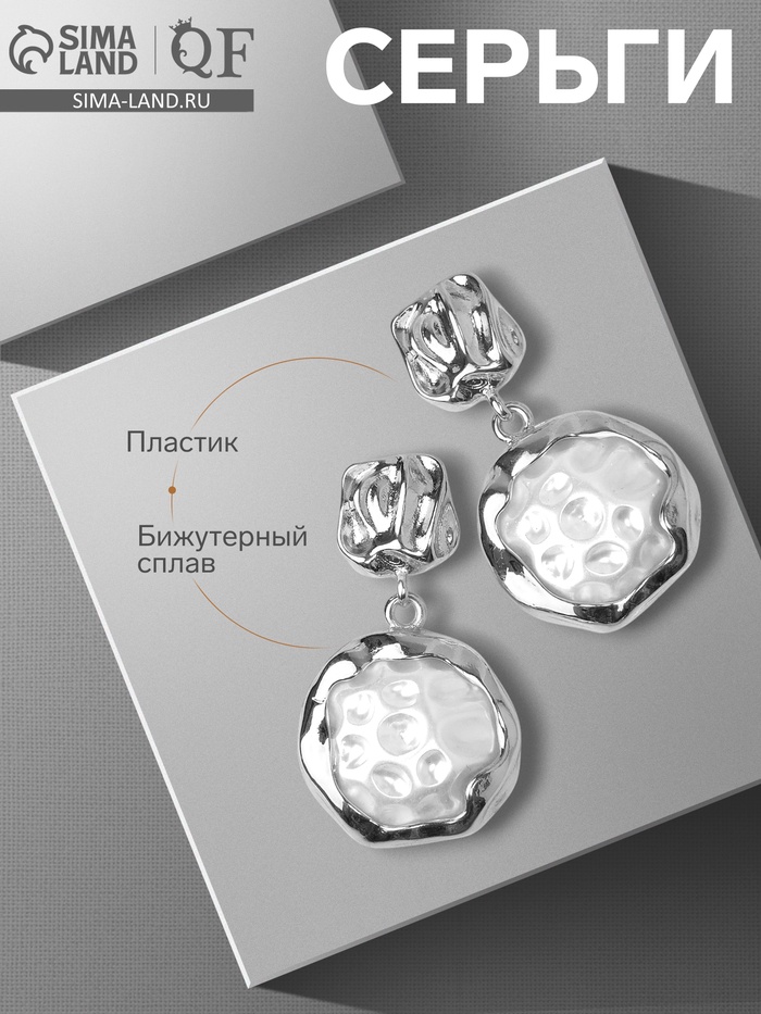 Серьги с жемчугом «Эксклюзив» мятый круг, цвет серебро