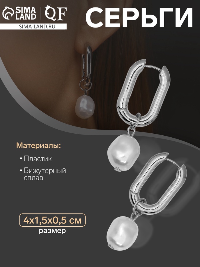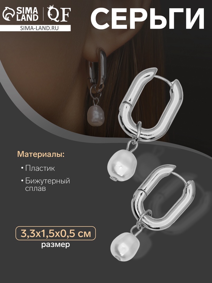 Серьги с жемчугом «Капля» полукруг, цвет белый в серебре