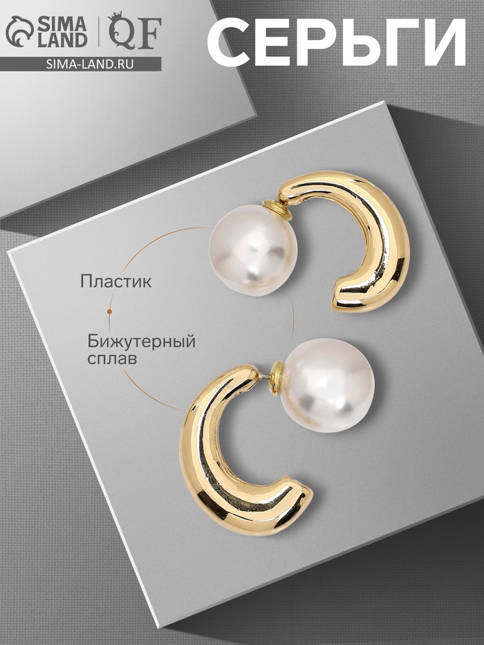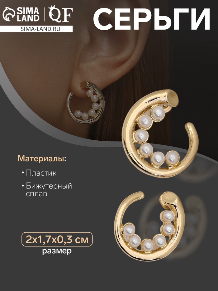 Серьги с жемчугом «Эксклюзив» полукольца, цвет золото