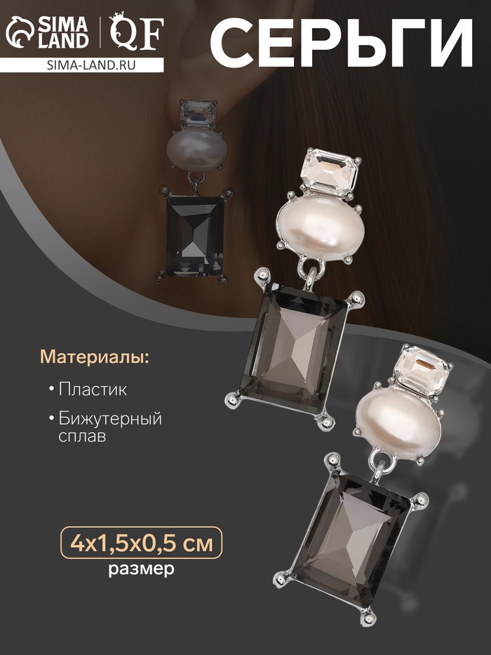Серьги с жемчугом «Бусина» графиня, цвет бело-серый в серебре